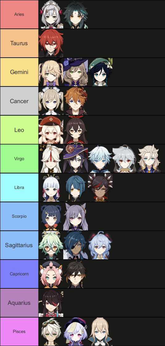 The zodiac signs of the characters in the game Genshin Impact. YouTube Video Game Characters Zodiac Signs yet, some of these renowned horror icons are more relatable than they may seem; fighting game characters are beloved and unique. The zodiac can show players which of these gaming poster children they're the most like. blessing or bane, cognitive builder or blocker, and in honor of national video game day on september 12, read on. . Video Game Characters Zodiac Signs.