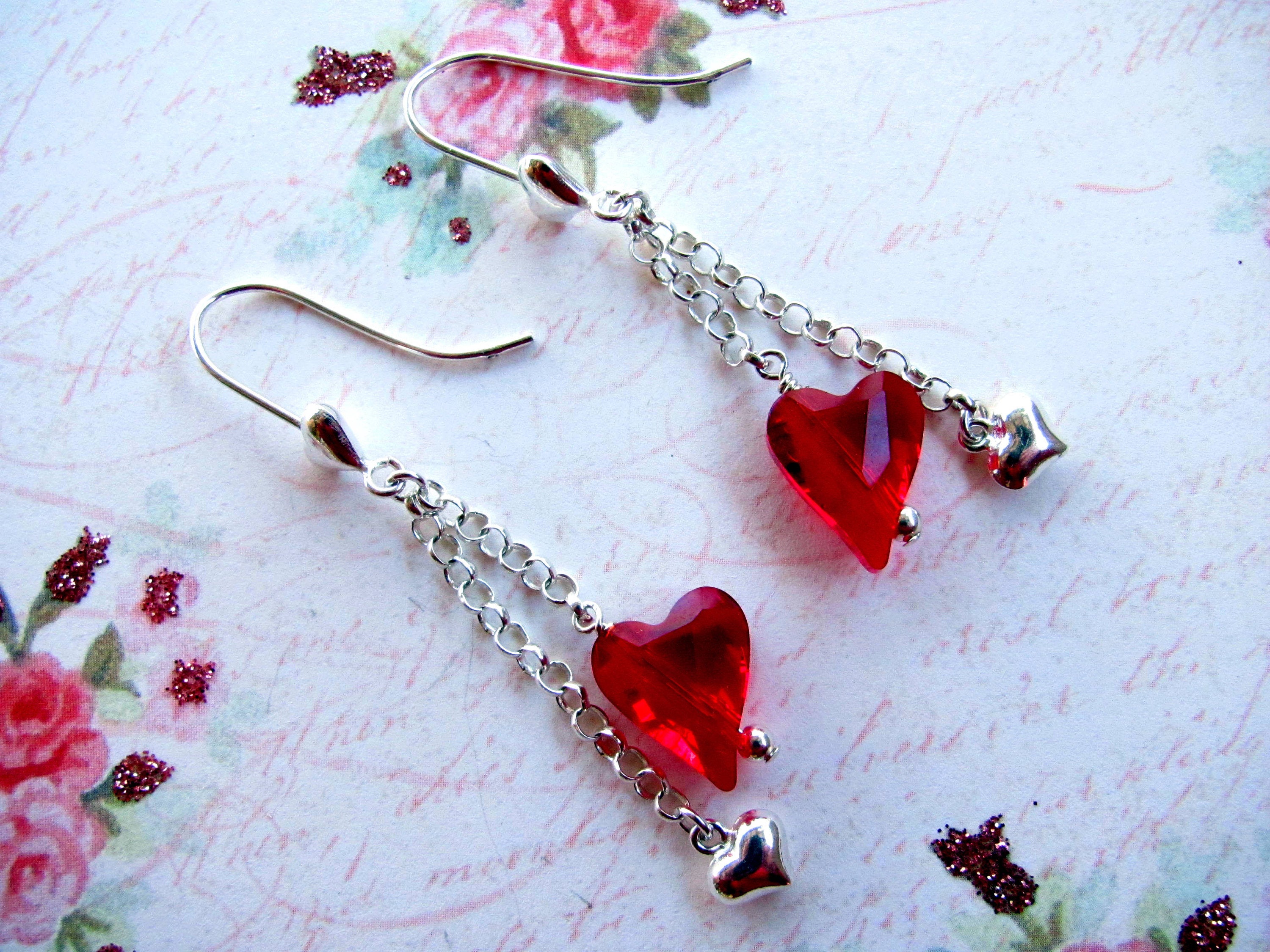 Red Heart Earrings Valentine Earrings Swarovski Earrings