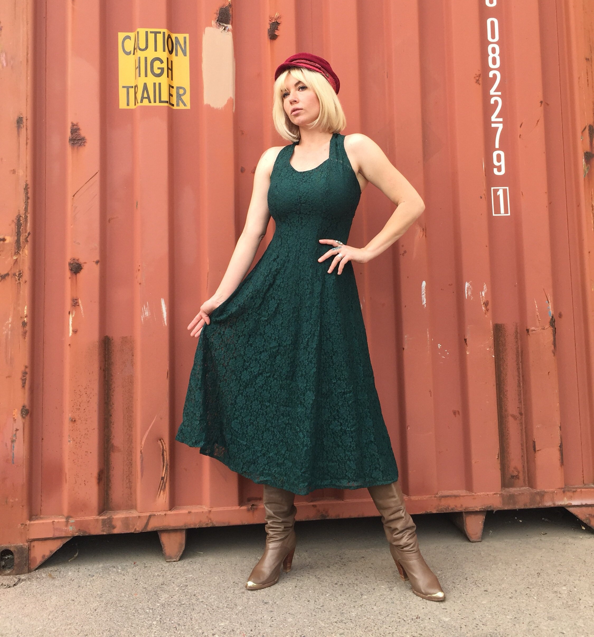 Vintage 'All That Jazz' Green Lace Backless Dress Criss Cross Straps