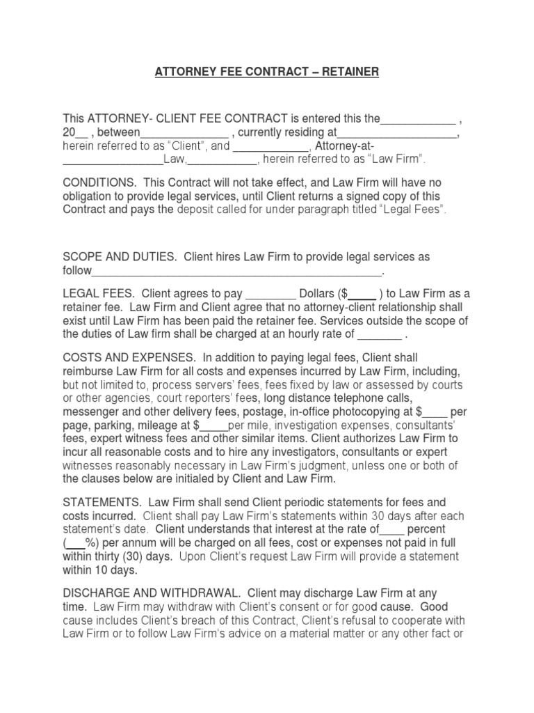 Attorney Fee Contract Attorney's Fee Law Firm