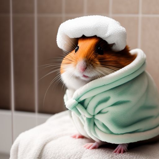 denserook885 A hamster in a bathrobe and slippers and a shower cap