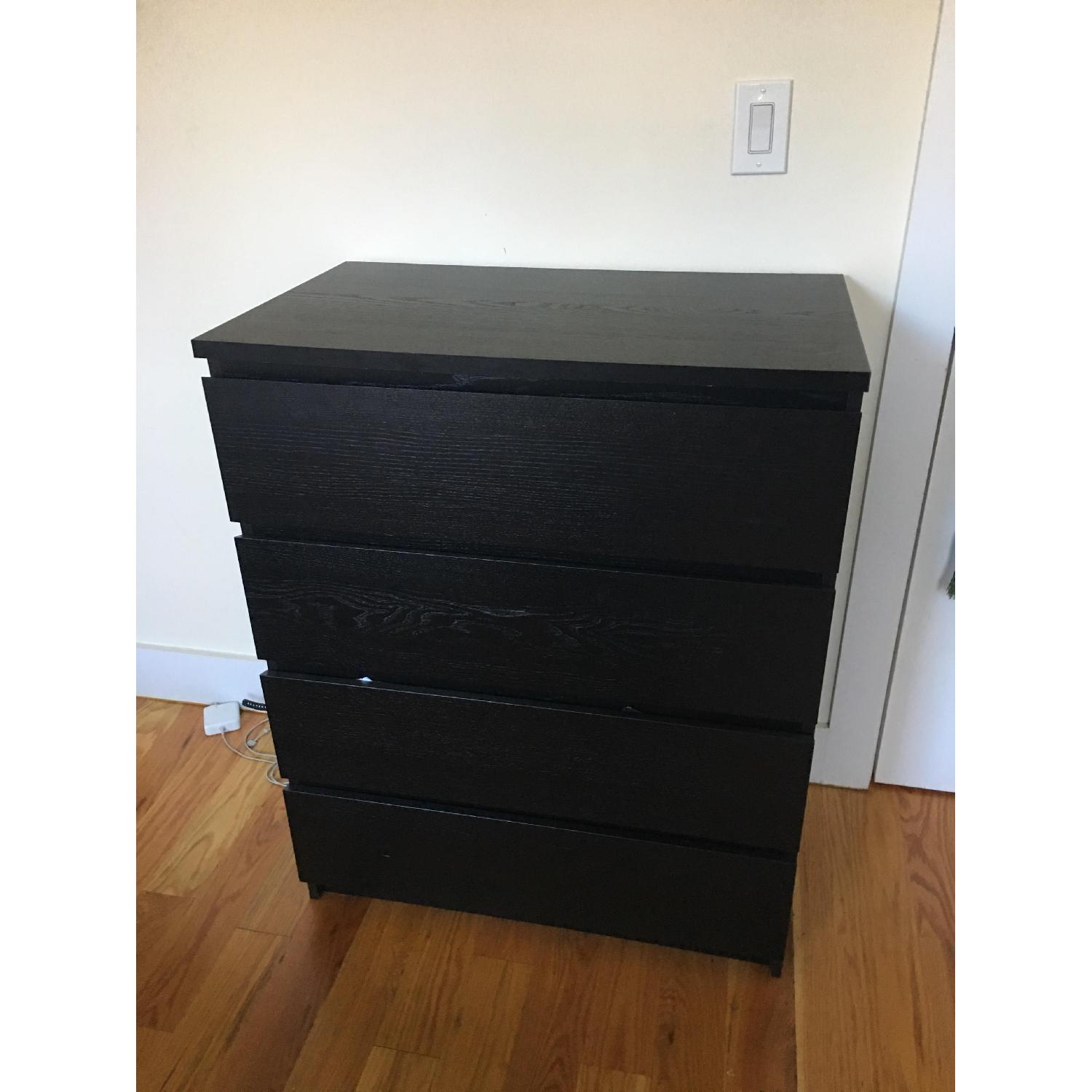 Ikea Malm 4 Drawer Dresser in Black Wood Veneer AptDeco