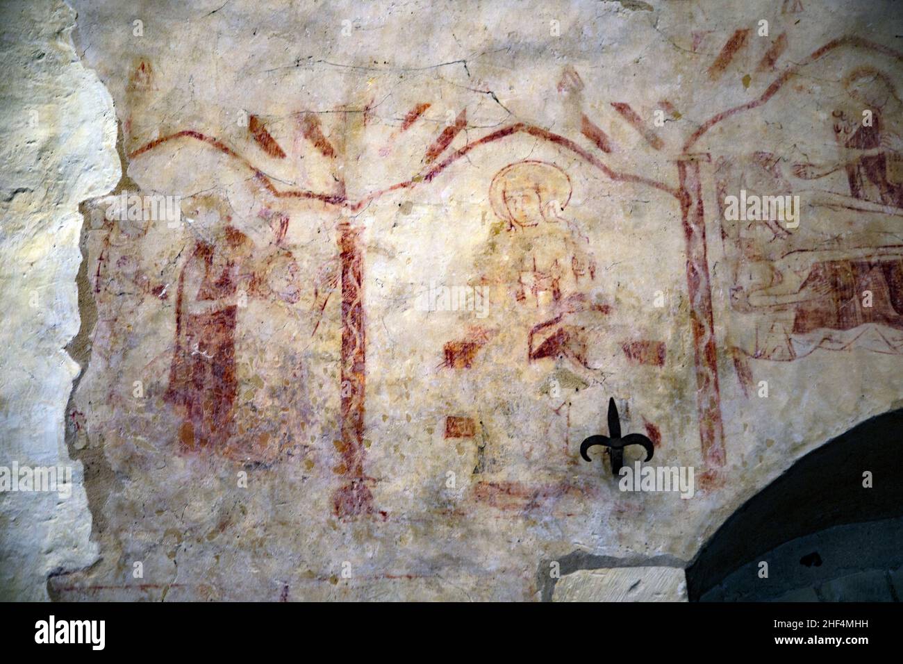 Medieval wall paintings in Wissington church, Suffolk, England, UK
