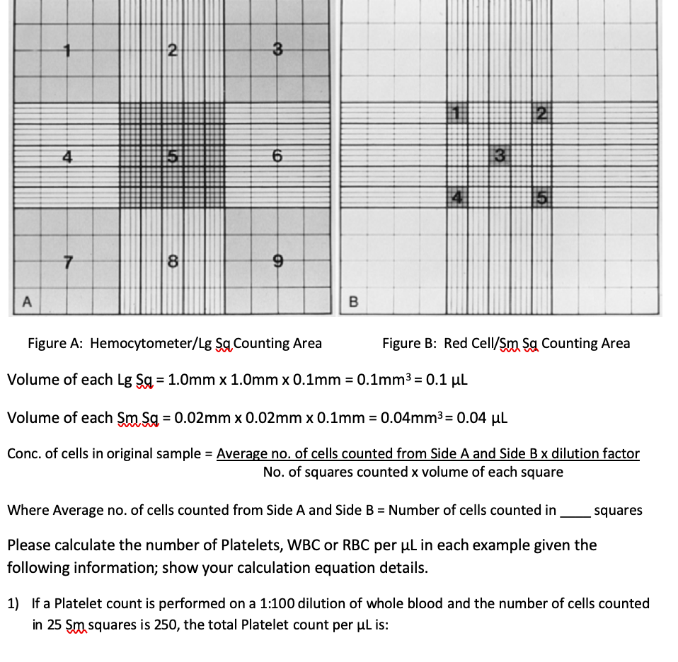 Solved Use the hemocytometer graph below to calculate the Cell Count Calculation Once you have counted cells in each of the squares, you perform the hemocytometer calculations based on your total counts, dilution factor, initial volume and desired final density. What common cell counting errors should i be aware of? Place the chamber in the inverted microscope under a 10x objective. Learn how to use a hemocytometer to count nucleated cells with. Cell Count Calculation.