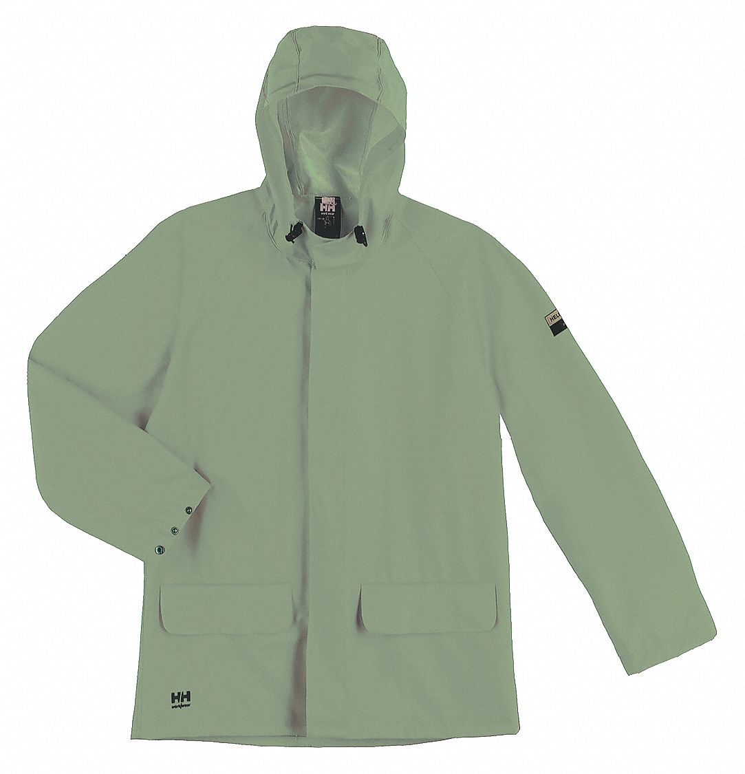 HELLY HANSEN Green, Rain Jacket, XS, Polyester, PVC, Men's, Hood Style