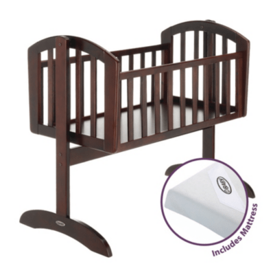 Obaby Sophie Swinging Crib & Mattress Walnut Cots & Cot Beds at ASDA