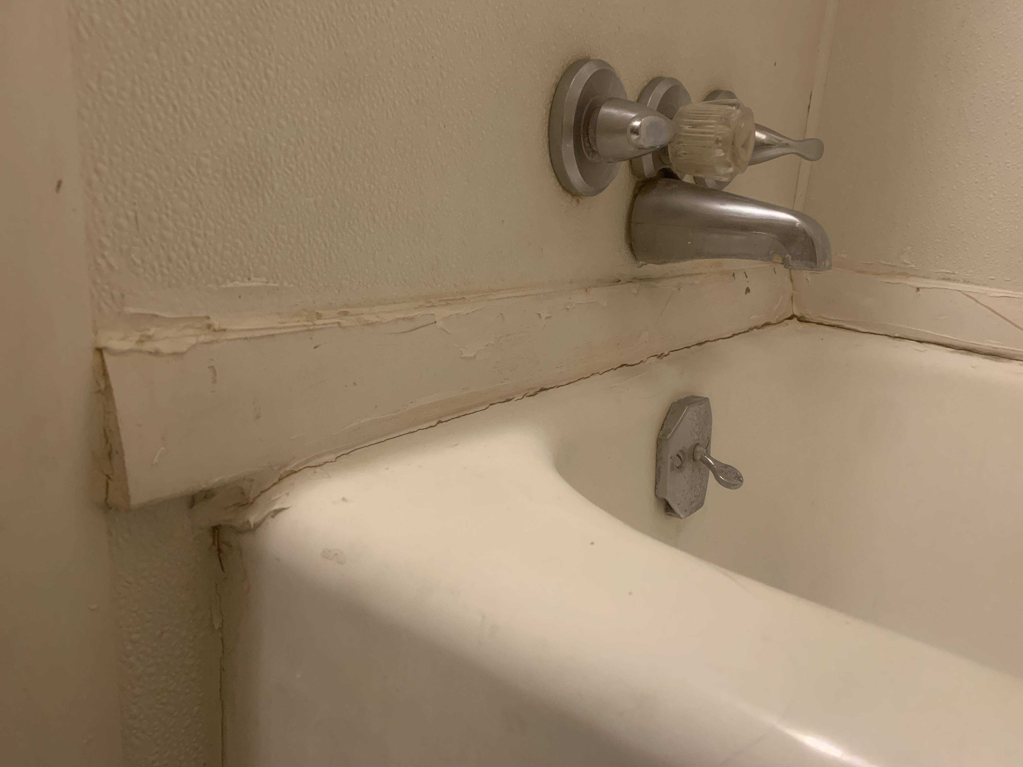 shower There is a piece of wood caulked to the top of my bathtub Does A Bathtub Need To Be Caulked Here’s how i recaulked my own bathtub in a few easy steps. If you’re looking for a way to make your bathroom feel cleaner and brighter, try recaulking your bathtub. It's recommended to wear old. All you need do is get a few basic tools together and tell the family the tub will be out of action for a couple. Does A Bathtub Need To Be Caulked.