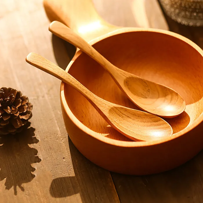 5Pcs/Pack Natural Style Chestnut Wood Small Spoon Soup Spoon Japanese