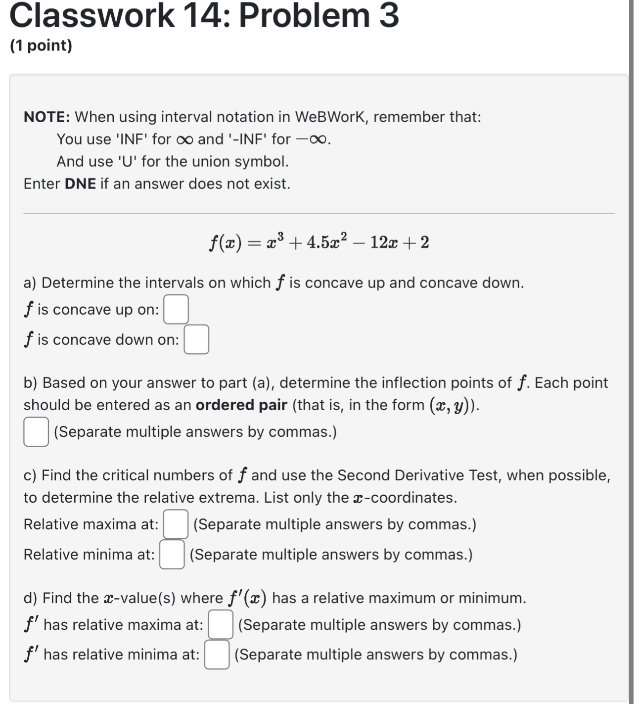 Classwork 14 Problem 3(1 point)NOTE When using