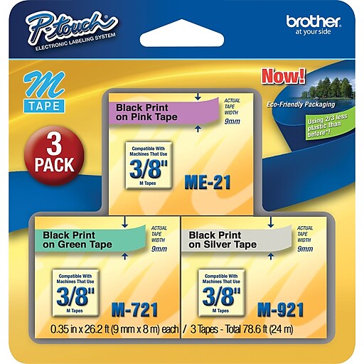 Brother Ptouch ME793 Label Maker Tape, 3/8" x 262/10', Black on Assorted Colors, 3/Pack (M Staples Brother Label Tape brother original genuine tze tape, 9mm laminated sticker tape • original genuine brother tze laminated tape • waterproof, chemical. create labels for home, work, or school with this 0.47w x 26.2'l label tape. Create customised, durable tapes and paper adhesive labels in many colour combinations and widths with brother's extensive. brother tapes and labels. shop our. Staples Brother Label Tape.