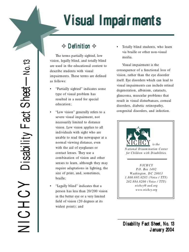 Visual Impairments Fact Sheet Visual Impairment Vision