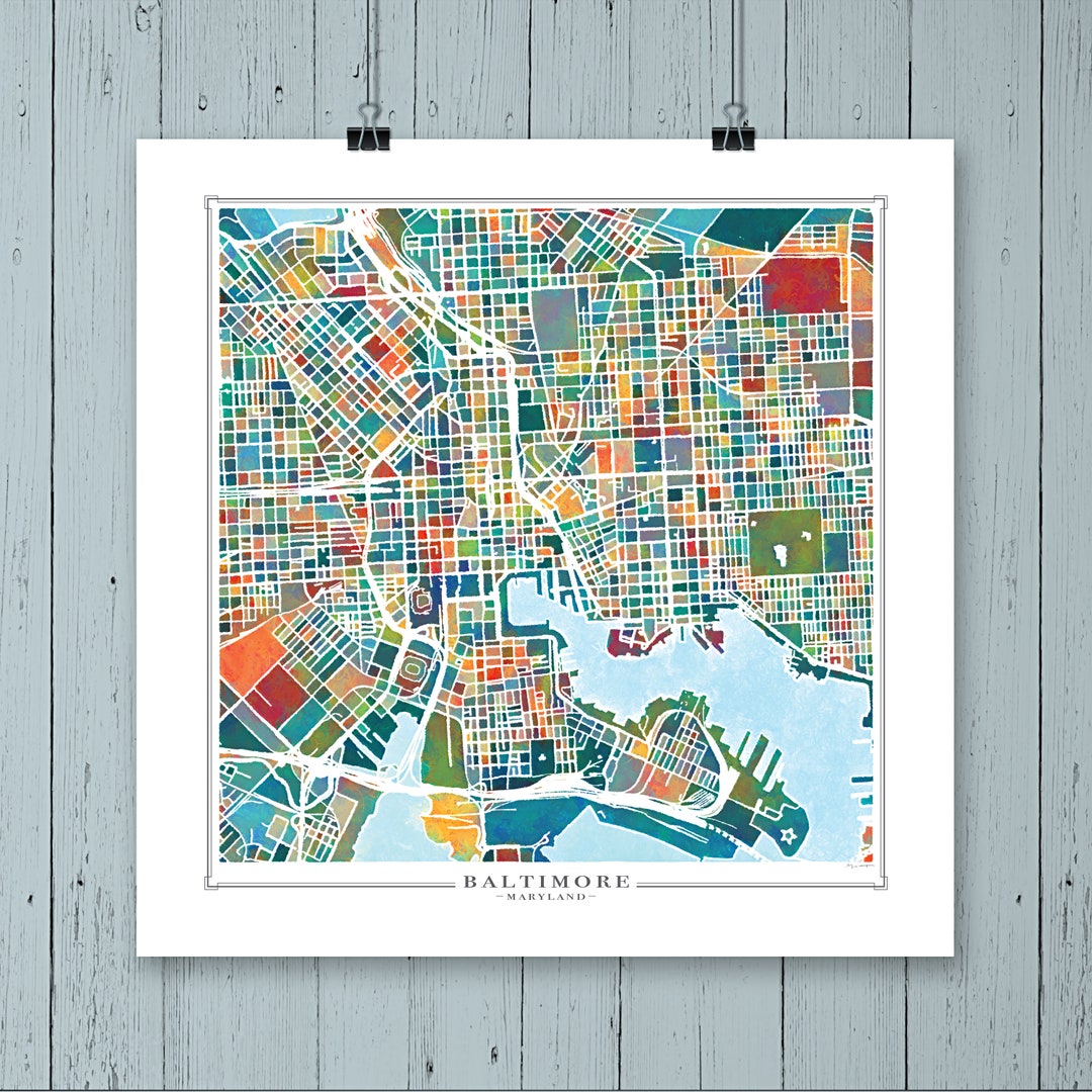 Baltimore, Maryland Digital Download Fine Art Map Print Etsy