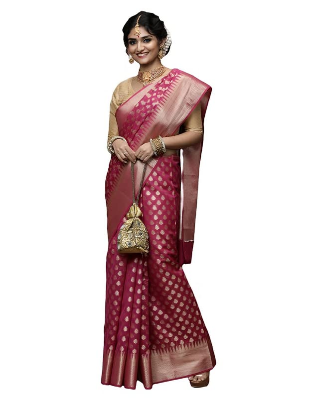 Buy V Vervee Couture Women's Cerise Pink Handwoven Banarasi Saree With