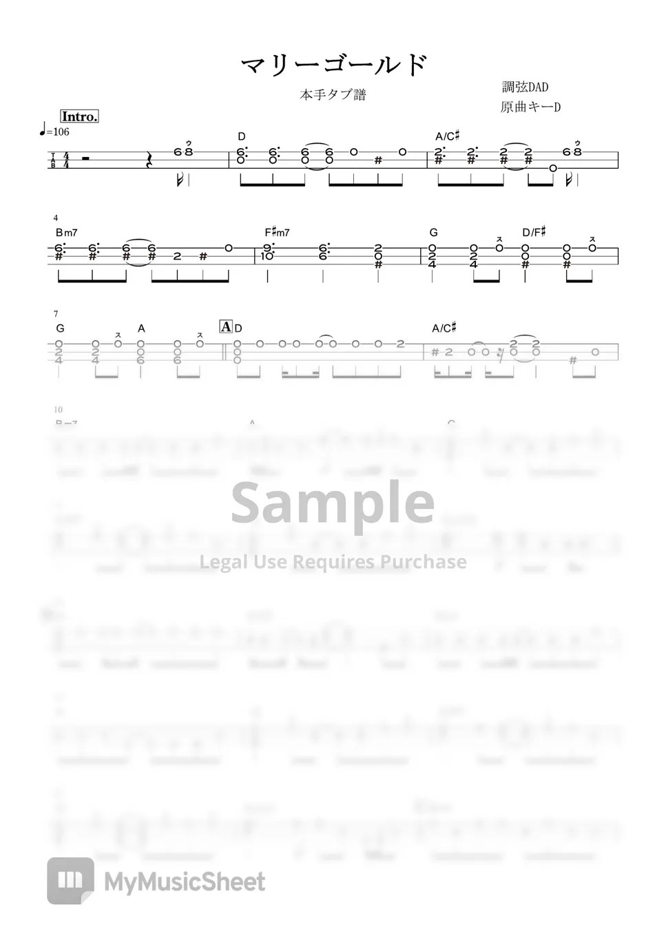 Aimyon Marigold(Tsugaru syamisen Tab) 樂譜 by Ayuzawa Kazuhiko
