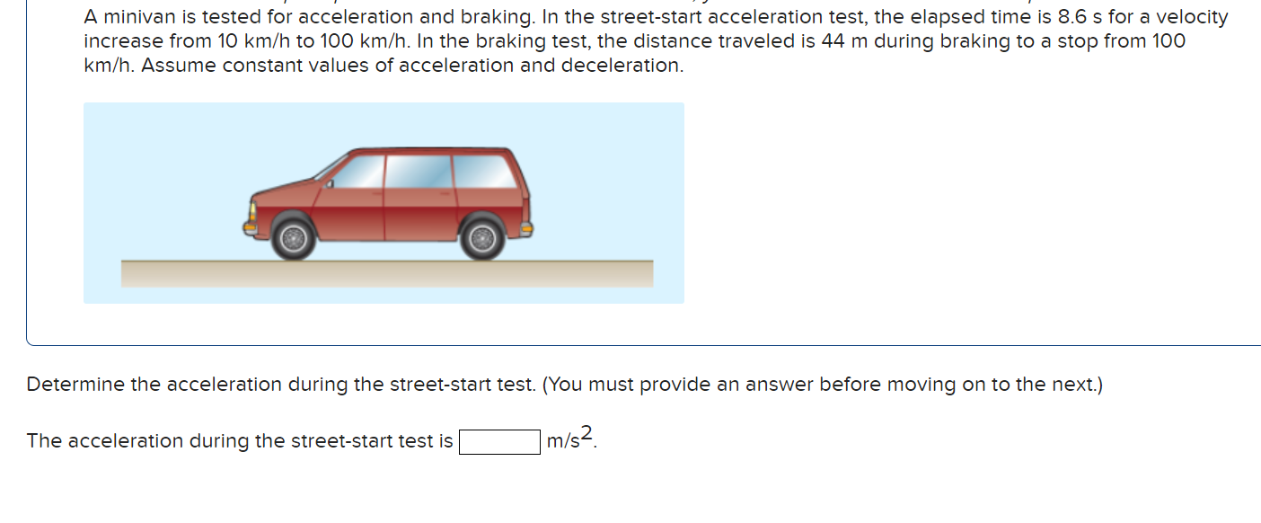 Solved A minivan is tested for acceleration and braking. In Acceleration Test The effects of constant acceleration creating rising gravity loads are measured in acceleration testing,. committed to 100% customer satisfaction. accelerated testing has been widely used for several decades. acceleration testing measures the stress of increasing gravity loads on aerospace fasteners, components and equipment. acceleration tests aids in determining if material will become hazardous after exposure to. Acceleration Test.
