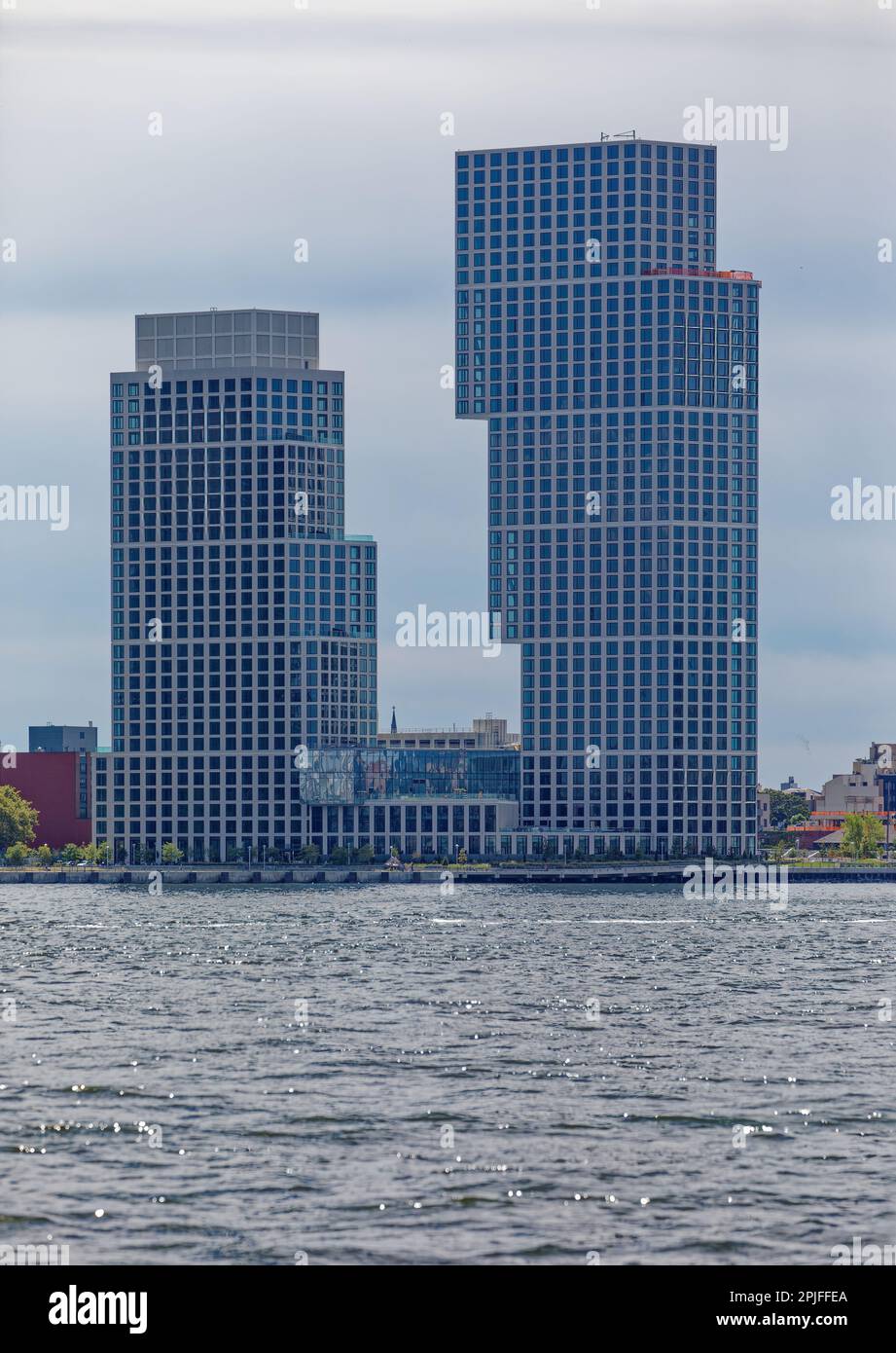 Eagle + West, interlocking white apartment towers on the Greenpoint