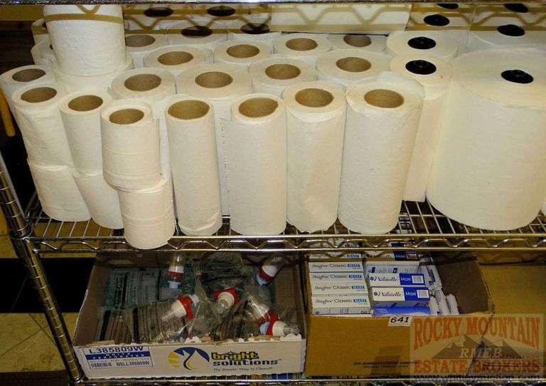 Asst. Partial rolls of paper towels, toilet paper, trash bags, feminine