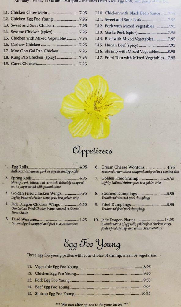Carta del restaurante Jade Dragon, Fargo