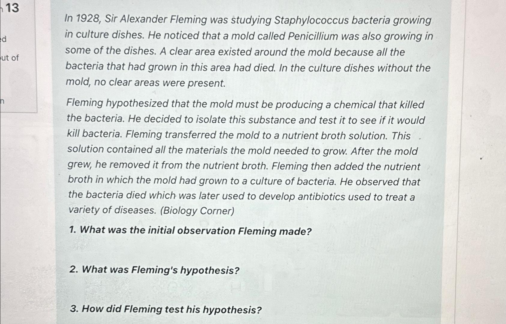 Solved 13In 1928, Sir Alexander Fleming was studying