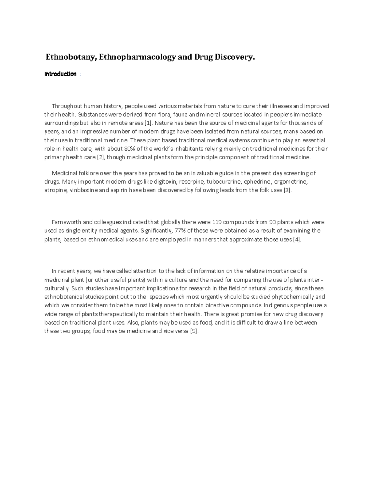 Introduction of ethnobotany and Ethnopharmacology. Ethnobotany, Ethnopharmacology and Drug