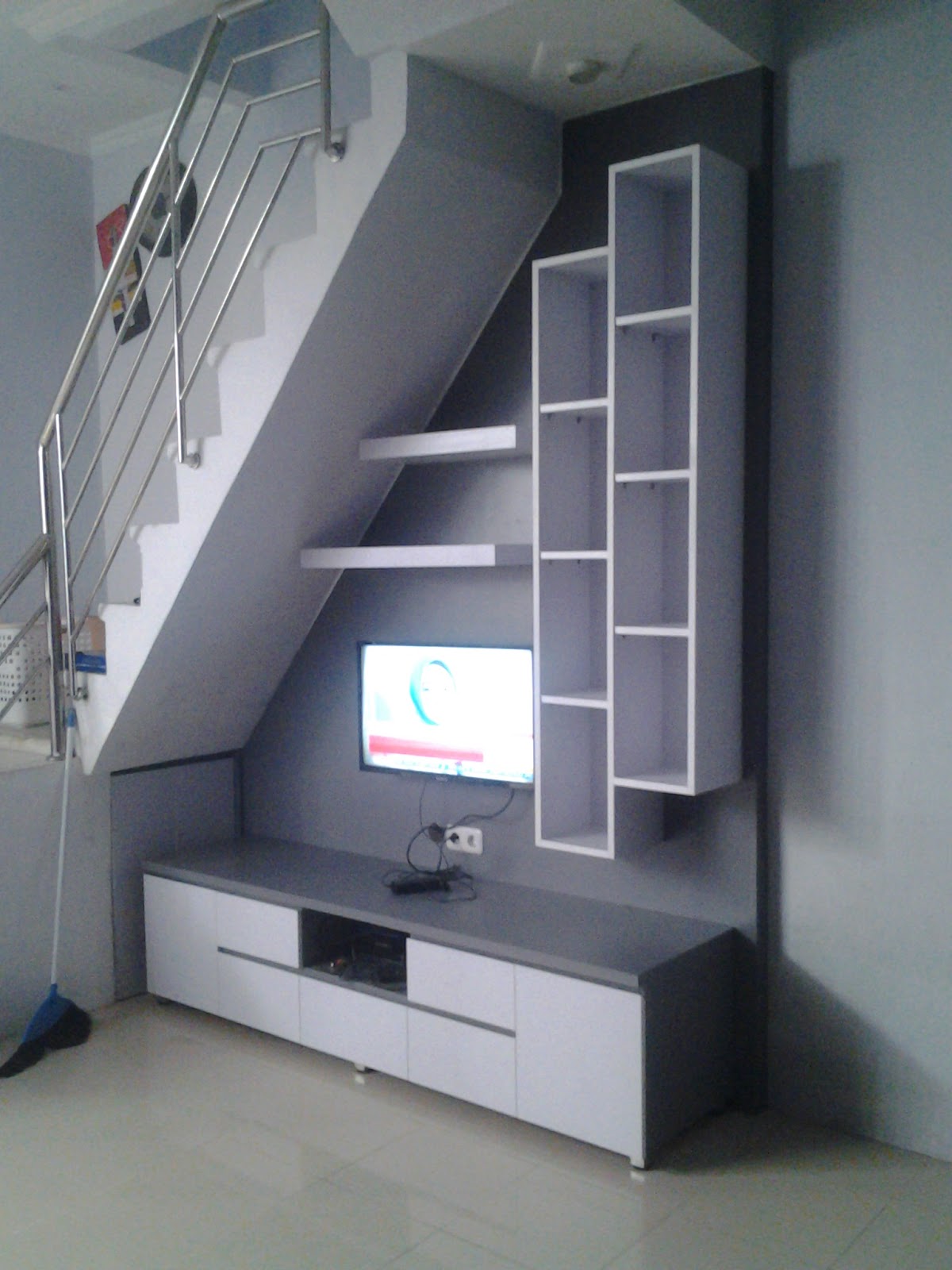 Project Backdrop TV Bawah Tangga Di Kedoya Kitchen Set Jakarta Cabinet Tv Bawah Tangga Seperti pada gambar di atas, area tangga yang berada di tengah rumah, dimanfaatkan sebagai media penyimpanan televisi dan berbagai hiasan rumah. Berikut ini beberapa rekomendasi kombinasi dekorasi ruang tv bawah tangga. Select from a wide range of tv stand and cabinet/tv console to complete your home living style. Lemari tv bawah tangga minimalis jika tangga berada di area tengah rumah,. Cabinet Tv Bawah Tangga.