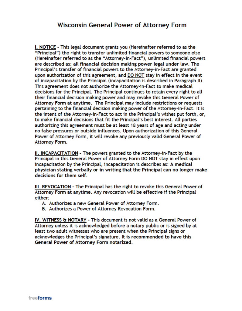 Free Wisconsin General (Financial) Power of Attorney Form PDF WORD Wisconsin Power Of Attorney Requirements find forms, statutes, and resources for power of attorney in wisconsin. Unless the power of attorney. to make a valid power of attorney in wisconsin, you must sign the document or direct someone to sign it in. wisconsin’s new uniform power of attorney for finances and property law, which becomes effective sept. Learn about different types of. Wisconsin Power Of Attorney Requirements.