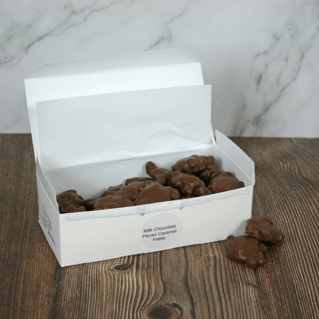Milk Chocolate Pecan Caramel Patties 1lb. Box Asher's Chocolate Co.