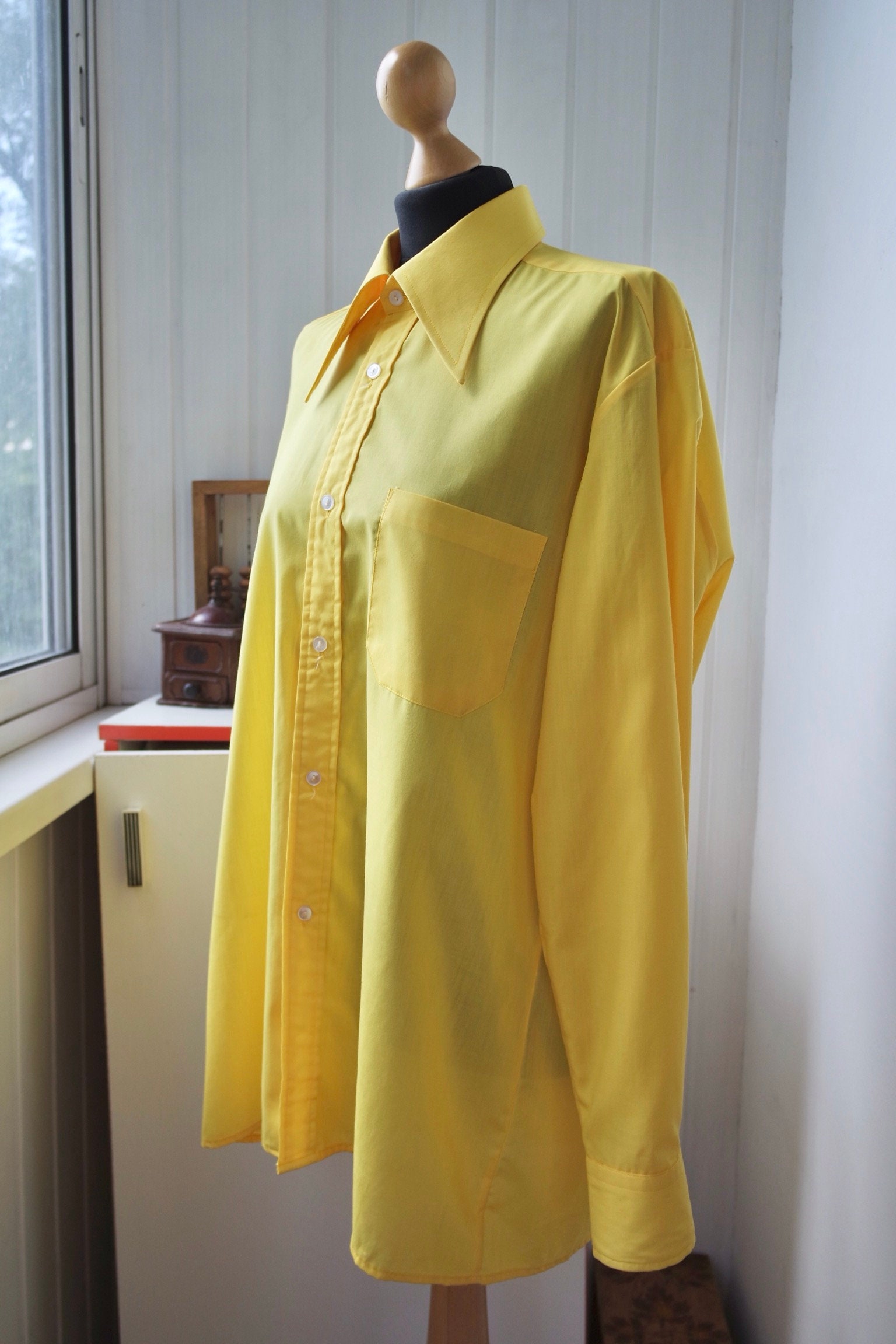 70s Dagger Collar Shirt 1970s Disco Shirt Yellow Shirt Men Etsy
