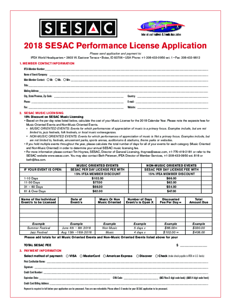 Fillable Online 2018 SESAC Performance License Application Fax Email
