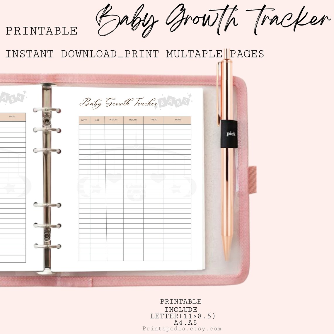 Baby Growth Tracker Baby Growth Chart Baby Growth Logbaby Etsy