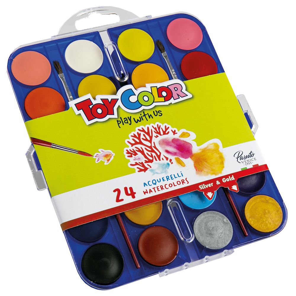 Toy Color Paint Pallet 22 Colours (2 Metallic) & 2 Paint Brushes