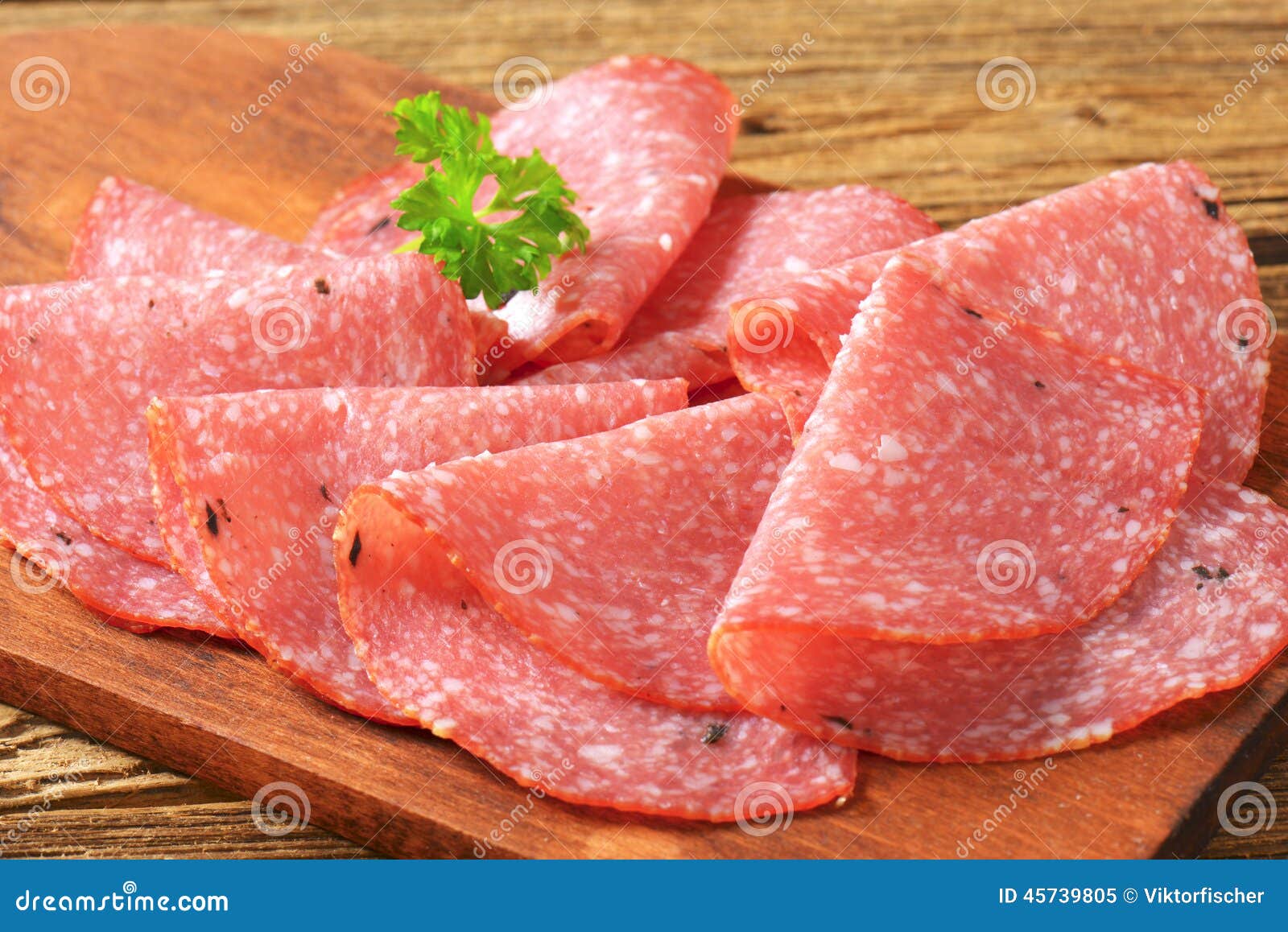 Thin salami slices stock image. Image of food, board 45739805