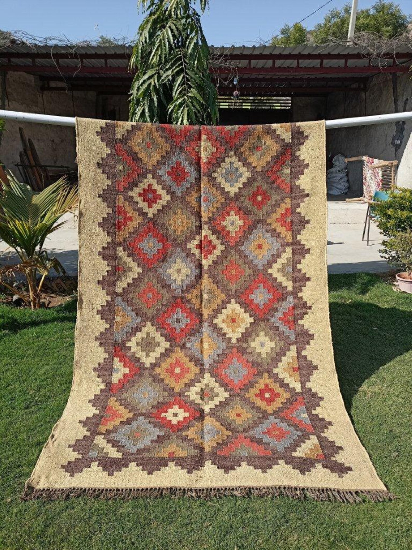 8X10 Ft Handmade KILIM RugOriental Multicolor Jute Rug Wool Etsy