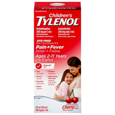 Tylenol Cherry Dye Free Childrens Pain Fever Medicine 8 Fl. Oz. albertsons