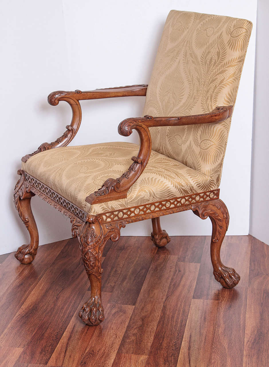 19th Century Irish Chippendale Carved Walnut Armchairs For Sale at 1stdibs