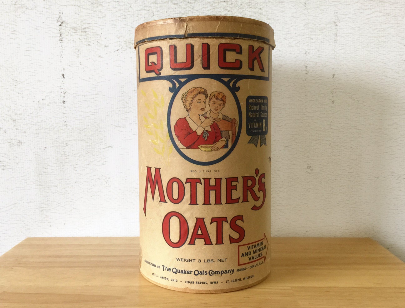 Quick Mother's Oats Cardboard Container / Quaker Oats
