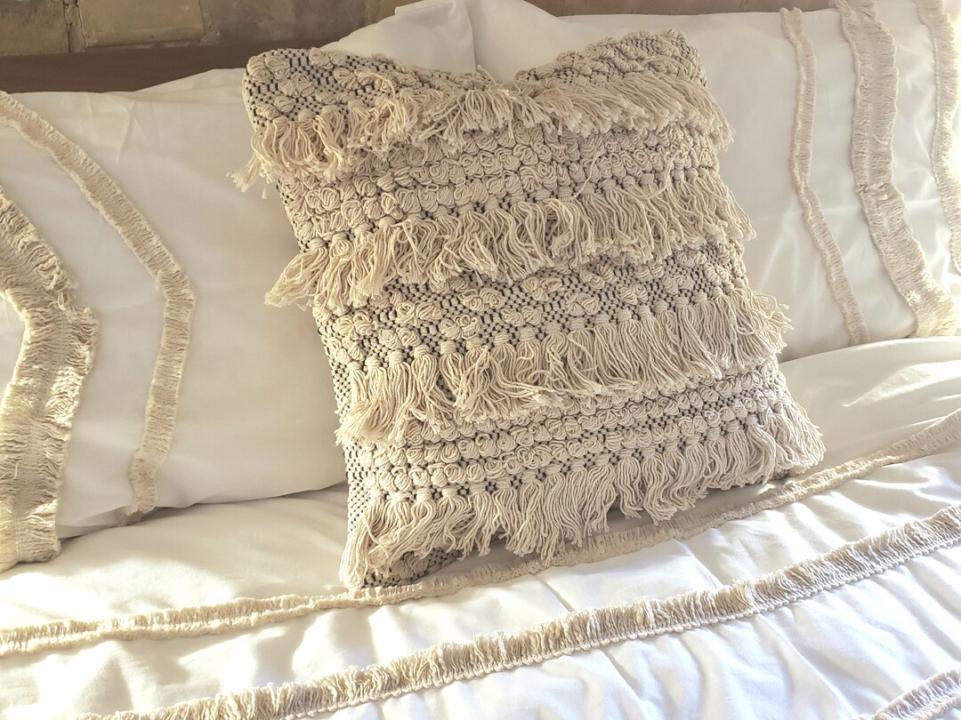 Bohemian Handmade Pillow Cover, Textured Pillow Cover Hand Loom Woven