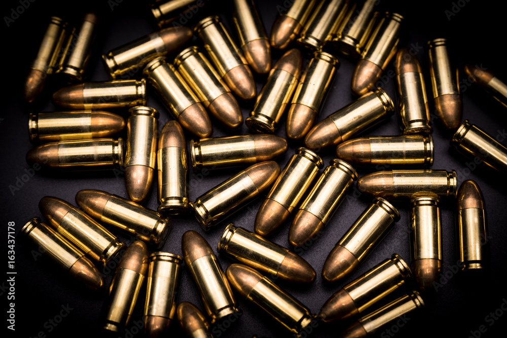 9 mm full metal jacket bullet on black background Stock Photo Adobe Stock