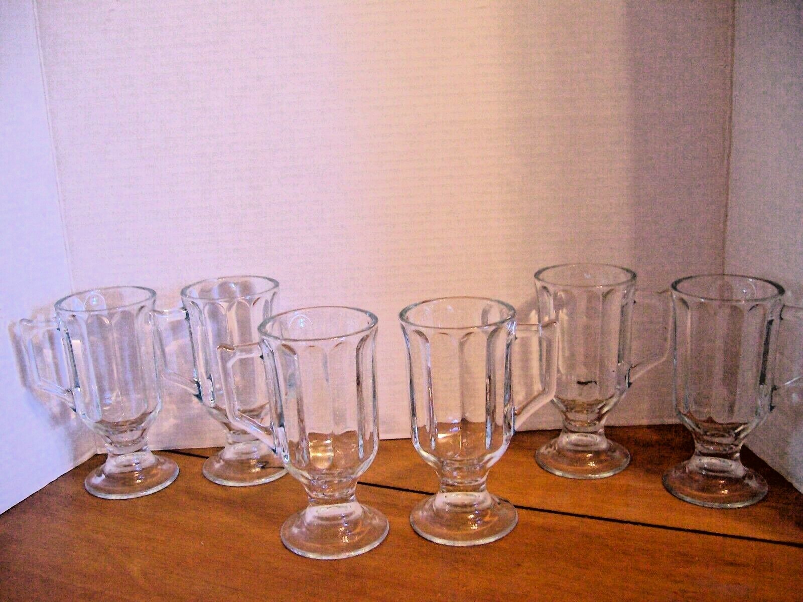Set of 6 Libbey Milan Irish Coffee Mugs Clear Blown Glass w/Panels