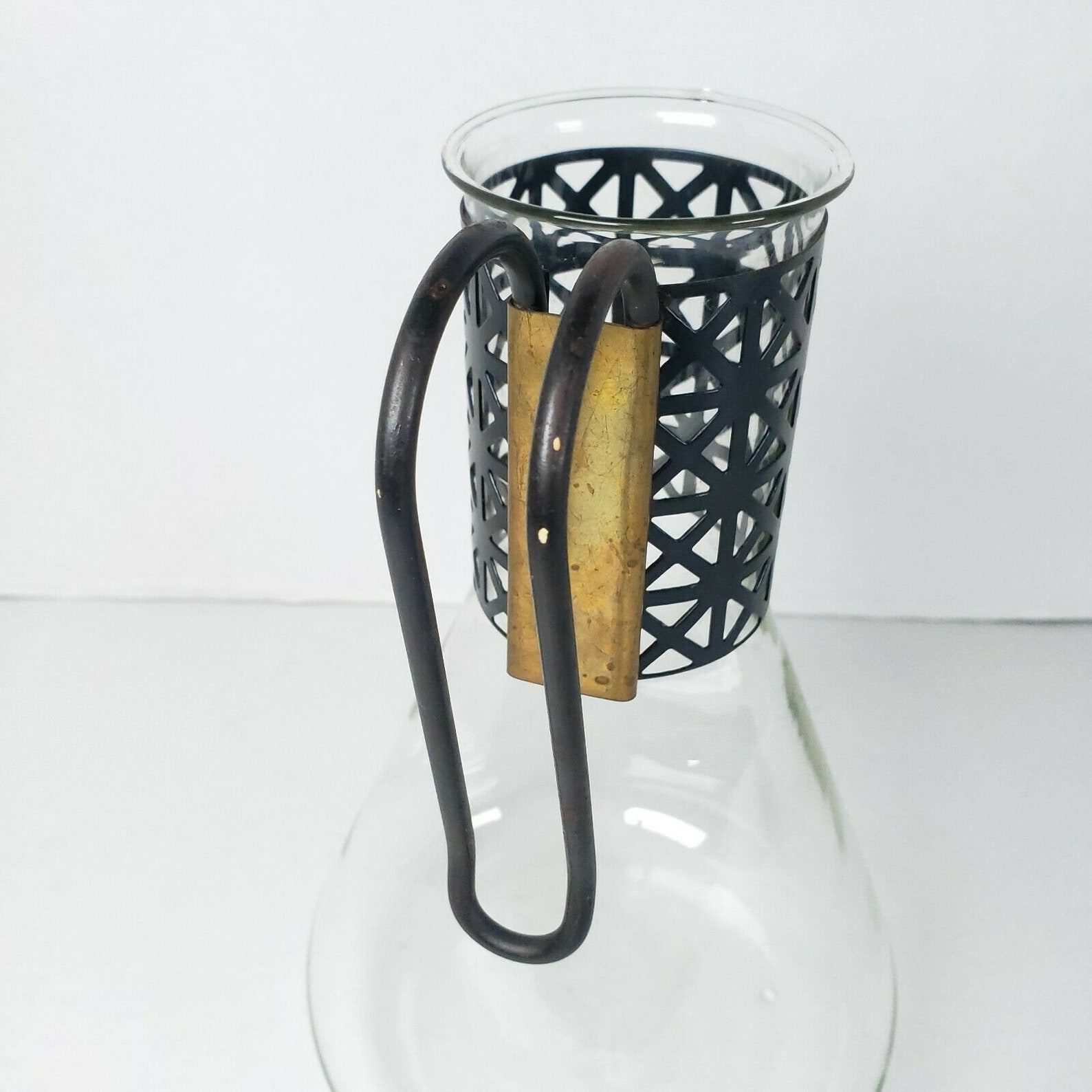 Vintage Pyrex Glass Carafe Decanter Beaker Style Metal Handle Etsy