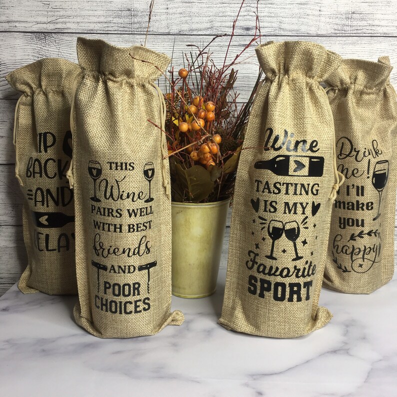Wine Gift Bag With Funny Sayings Burlap Vinyl Tote Bag Etsy