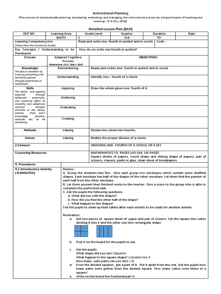 COT Math Fraction (Mathematics) Lesson Plan