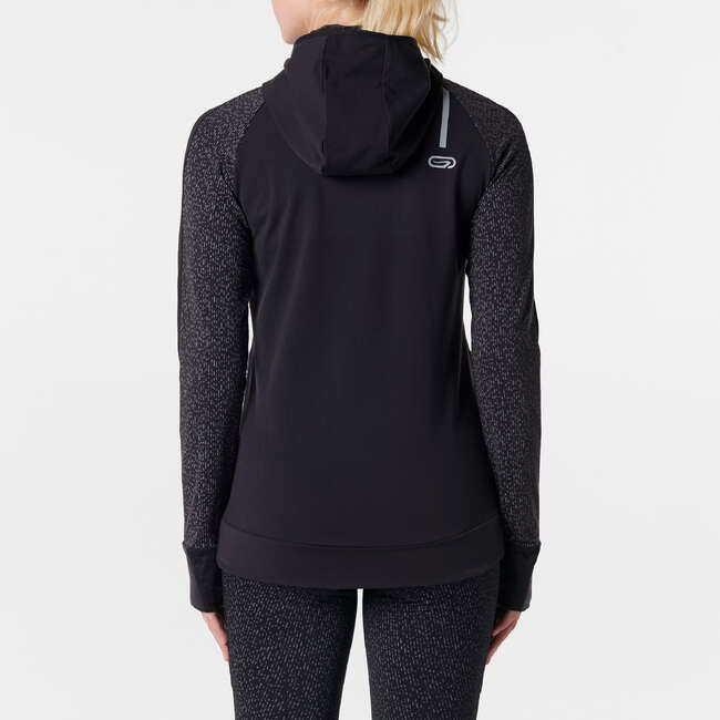 KALENJI RUN WARM NIGHT WOMEN'S JOGGING JACKET BLACK PRINT...