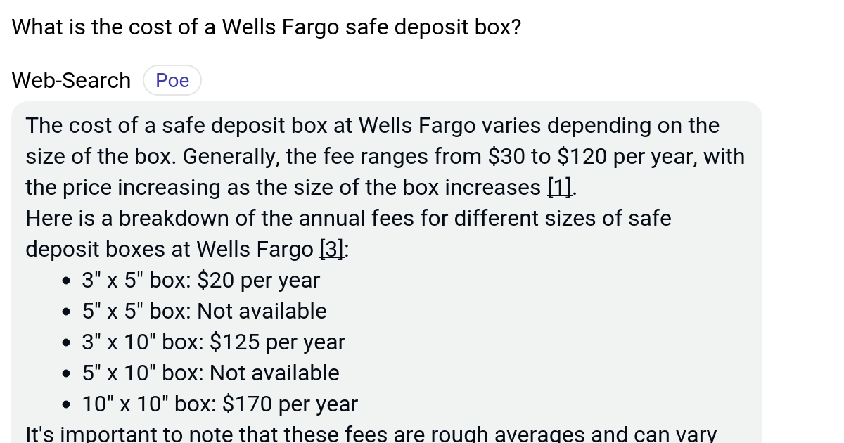 What is the cost of a Wells Fargo safe deposit box? Poe