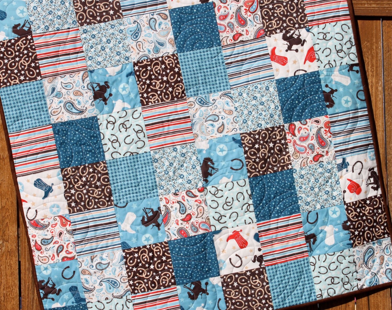 Western Cowboy Baby Boy Quilt Blue Brown Red by JennyMsQuilts