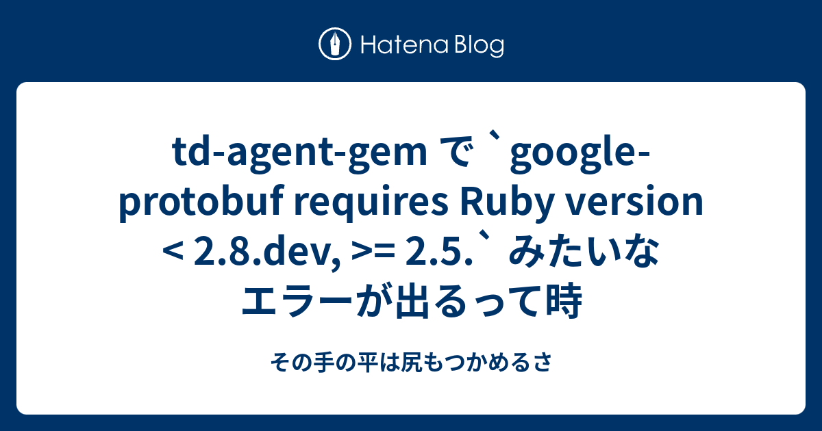 tdagentgem で `googleprotobuf requires Ruby version = 2.5.` みたいなエラーが