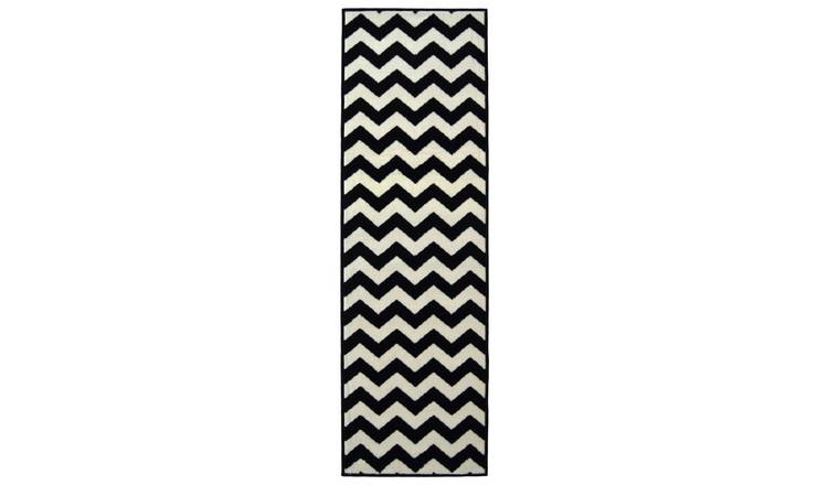 Buy Homemaker Chevron Monochrome Runner 185x60cm Black Hallway