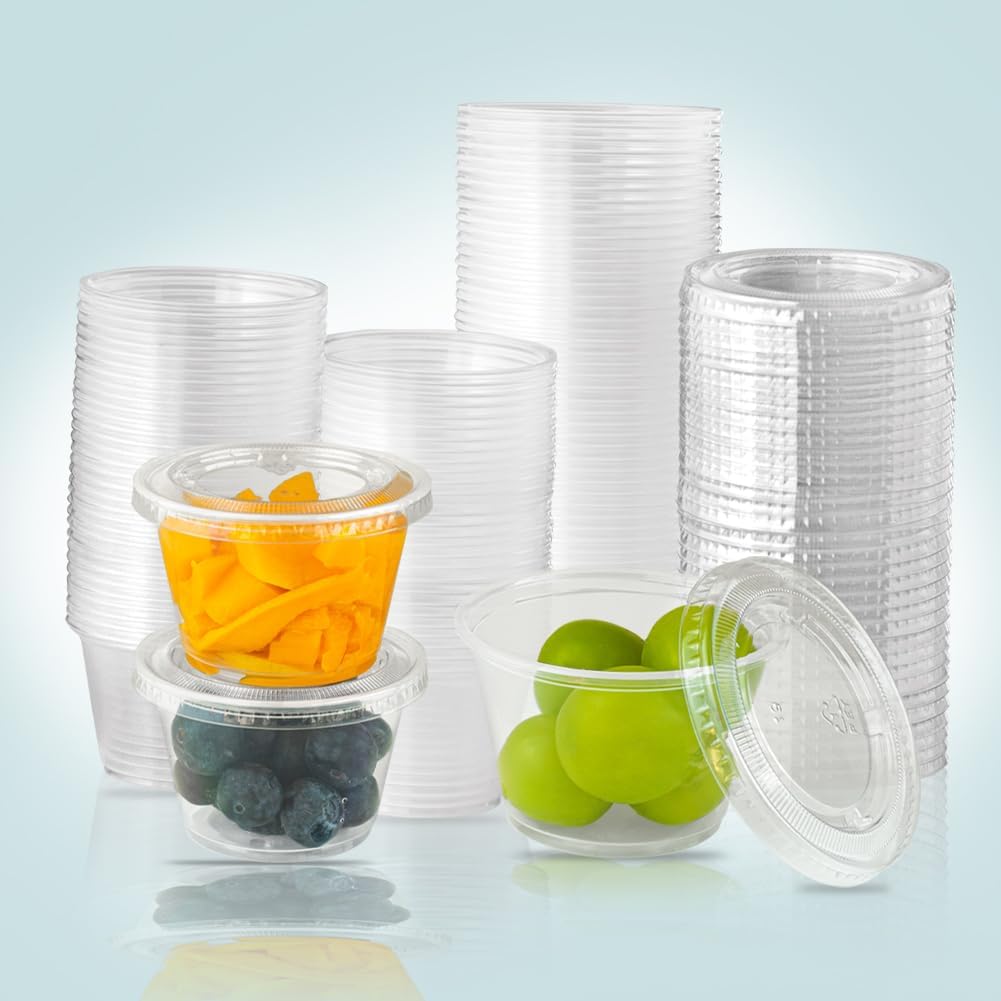 Disposable 2oz Plastic Condiment Cups with Lids, Souffle Portion, Jello Condiment Cups With Lids  5/5         (1 387) Above all, glass condiments cups do not discolor, retain smells, or leach chemicals into your dishes. These condiments cups with lids are not just elegant to look at but can also help you create a mise en place for an easier and organized meal preparation. 5/5         (1 387) Condiment Cups With Lids.