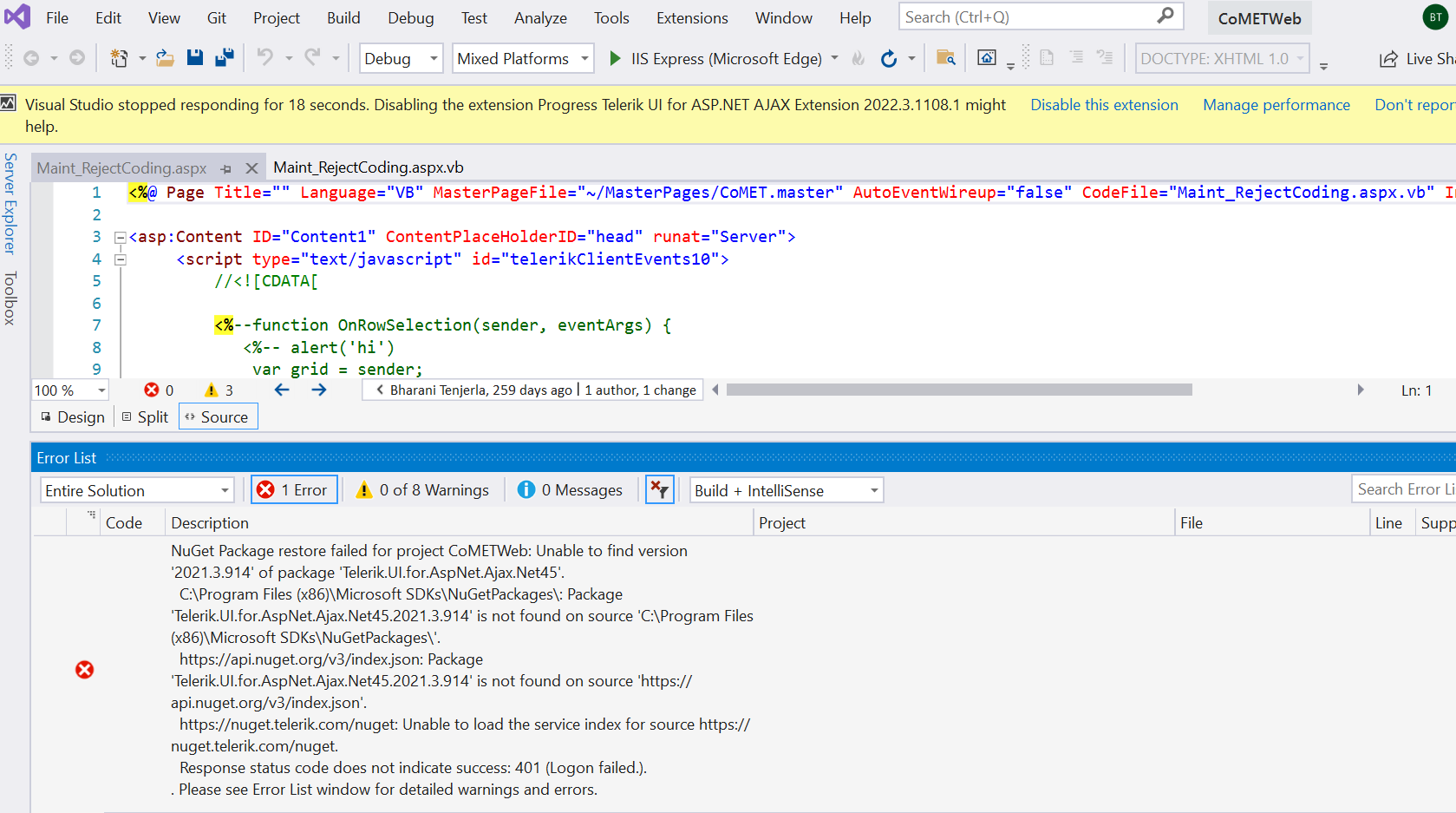 Nuget package restore failed