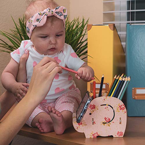 Desk Supplies Organizer,Roiroiko Wooden Cute Elephant Pencil Pen Holder